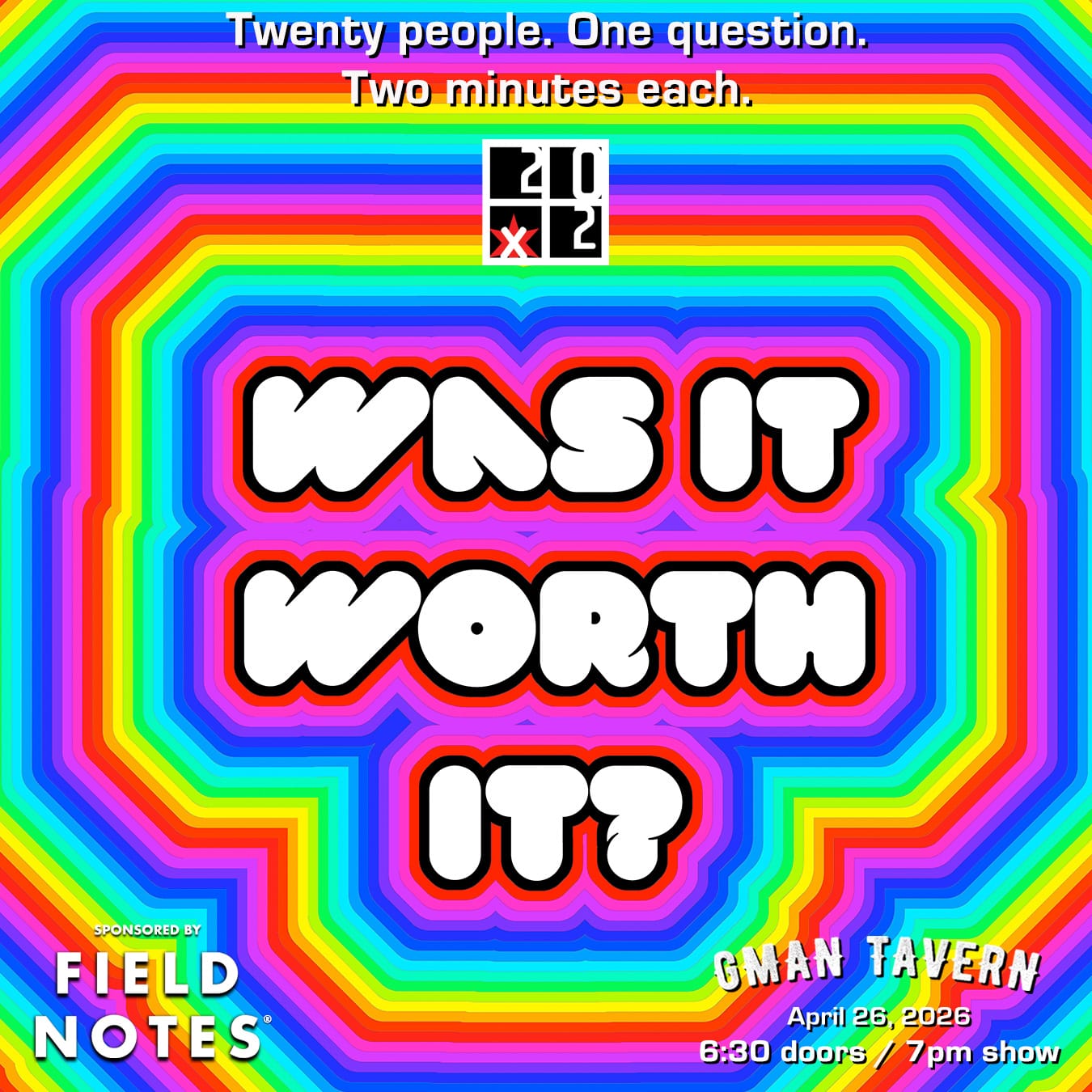 Come see me April 26th for this edition's question of "Was It Worth It?"